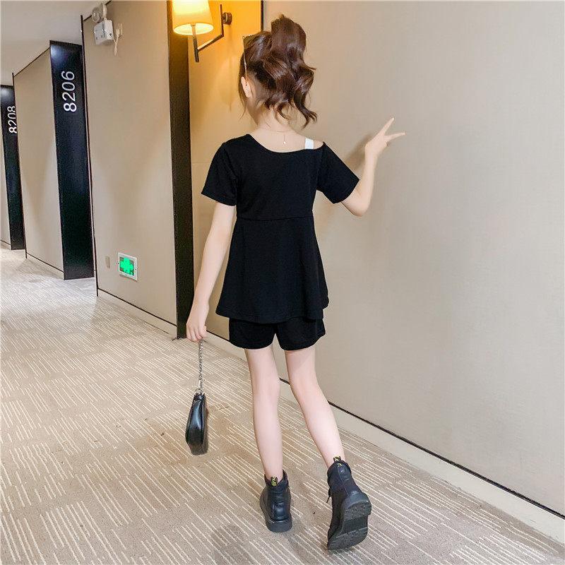 Girl's summer dress foreign pie suit 2022 new CUHK Trendy Nets Red Summer Children Little Girl Two Sets of Tides