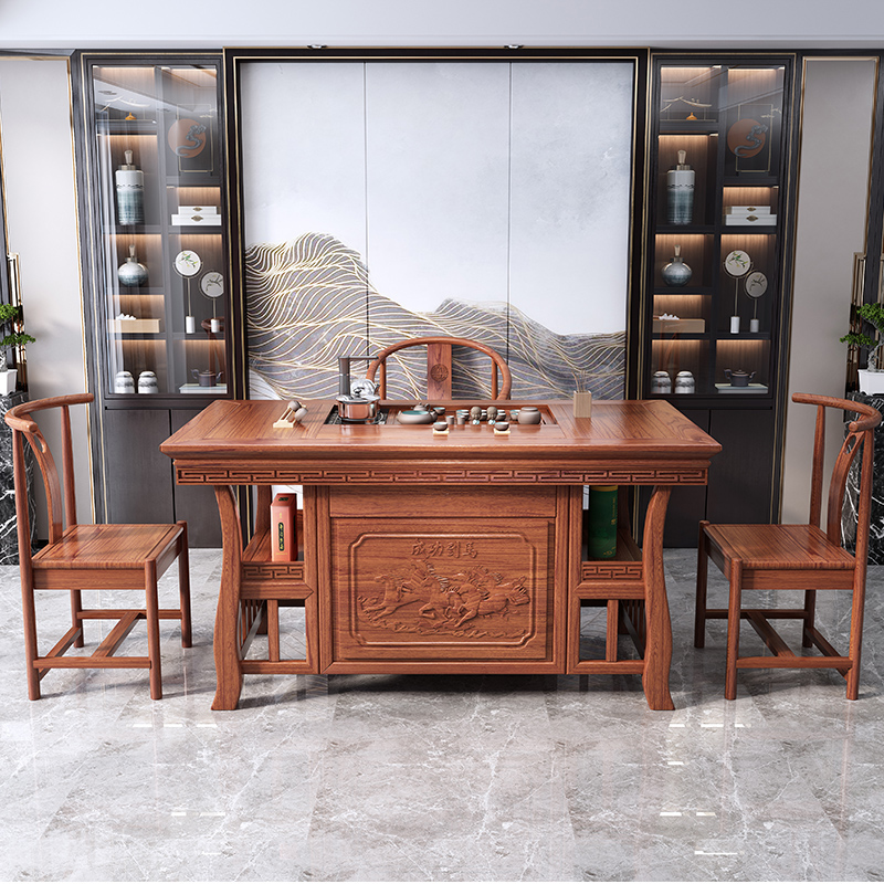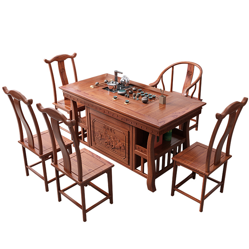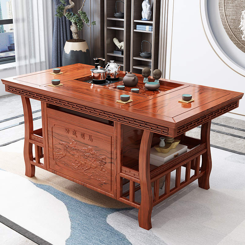 Solid wood board tea table combined tea table office drink tea table household living room balcony elm tea table