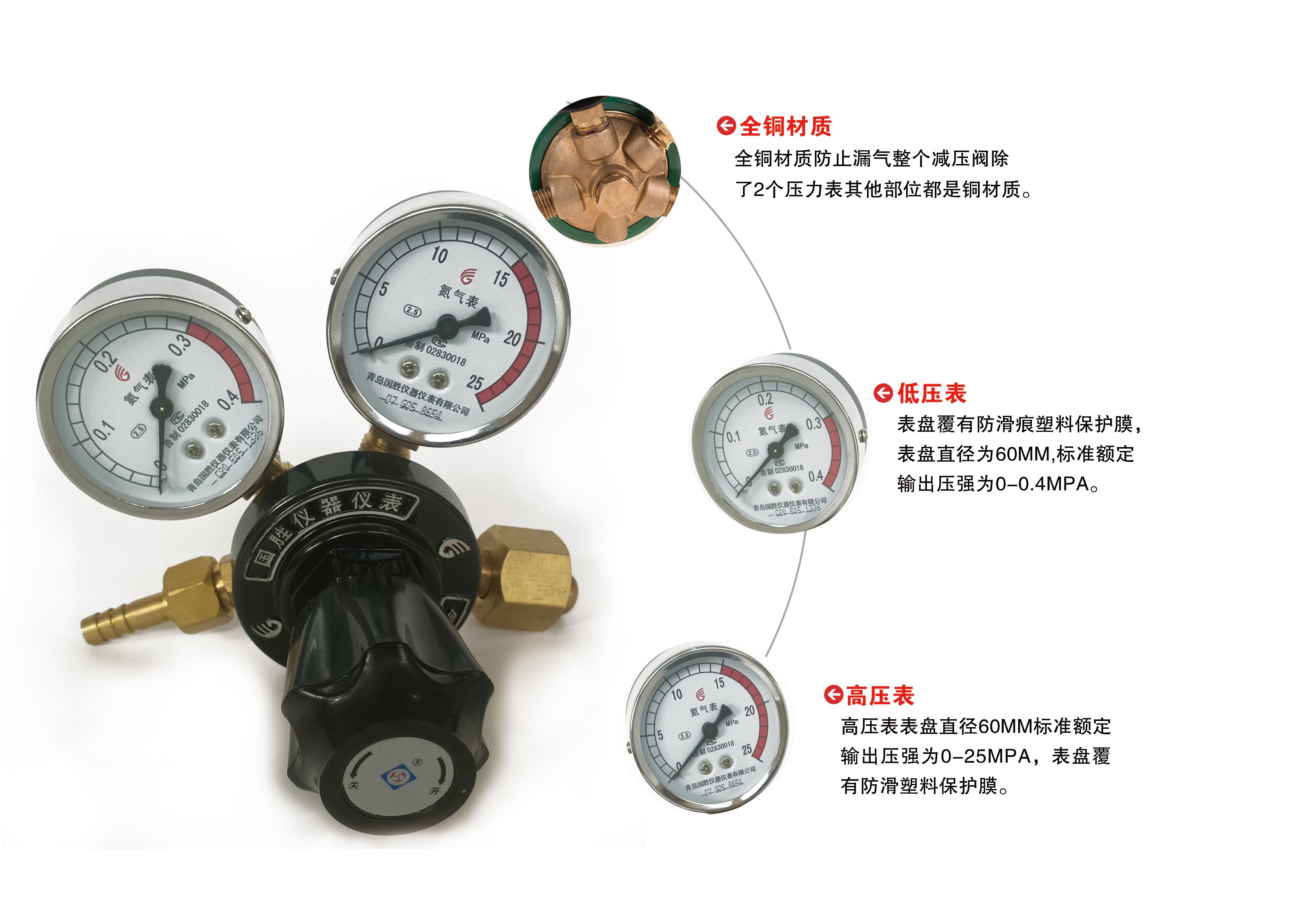 Qingdao Guosheng boutique all-copper nitrogen gauge YQD-06 nitrogen reducer pressure gauge