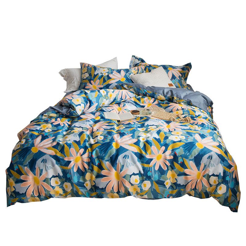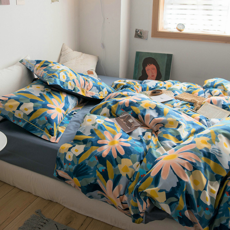 American Fields Garden 60s Long Suede Cotton Four Pieces Small Fresh All Cotton Pure Cotton Linen Quilt Cover Naked Sleep 1 8m Bed Goods