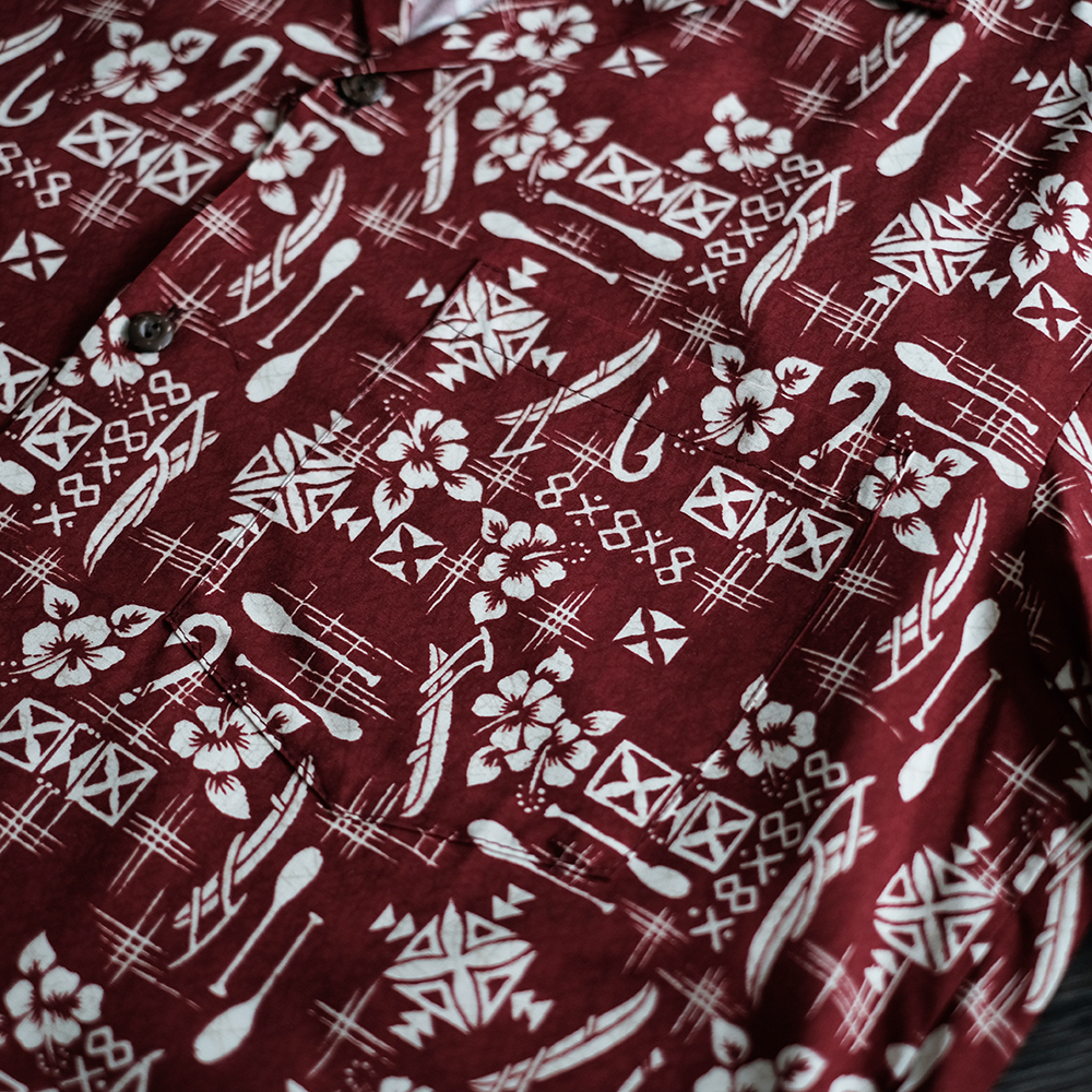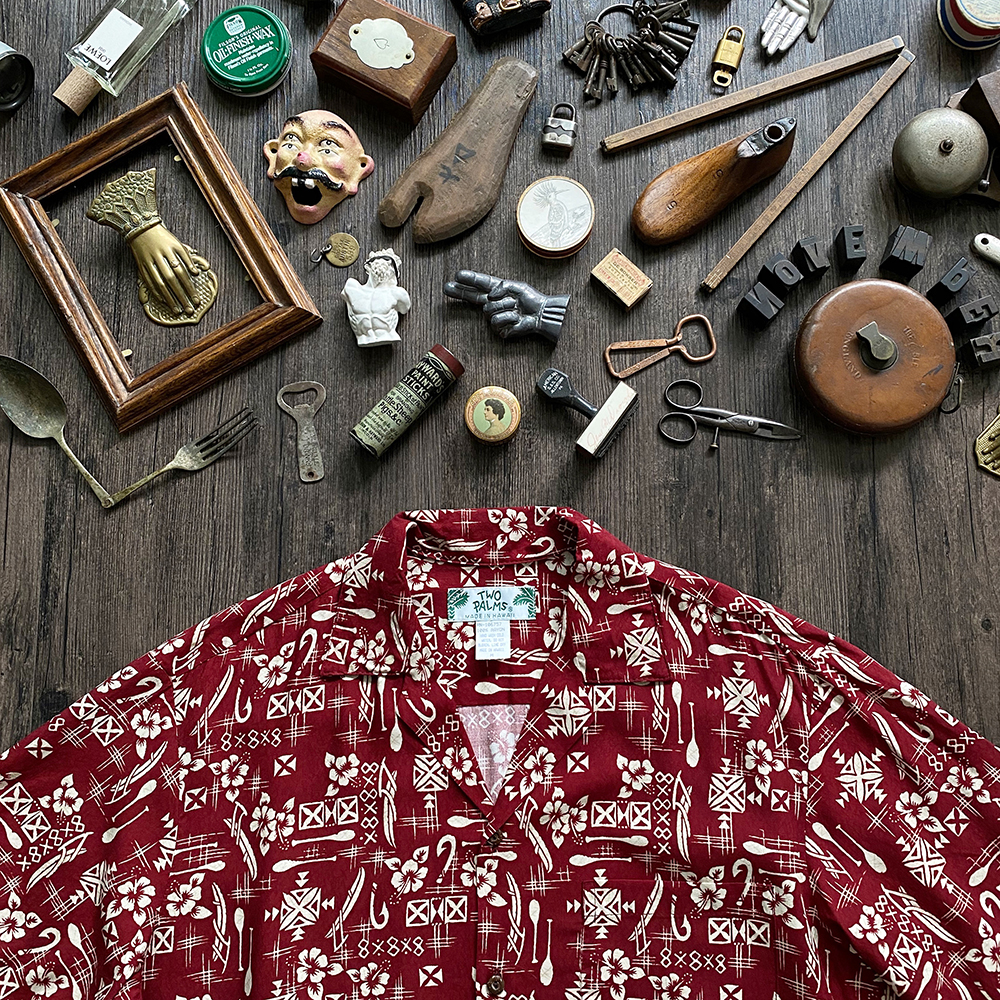 Spot Two Palms American-made crimson paddle print Hawaiian shirt Cuban collar American retro