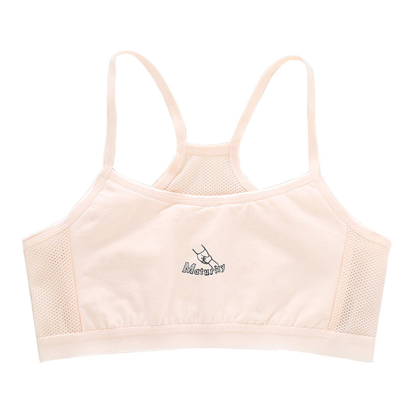 Girls camisole cotton development period girls bra primary school students underwear thin mesh breathable tube top white