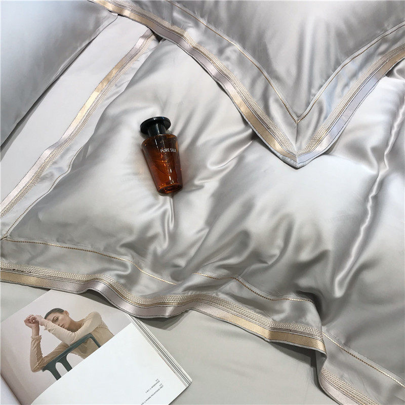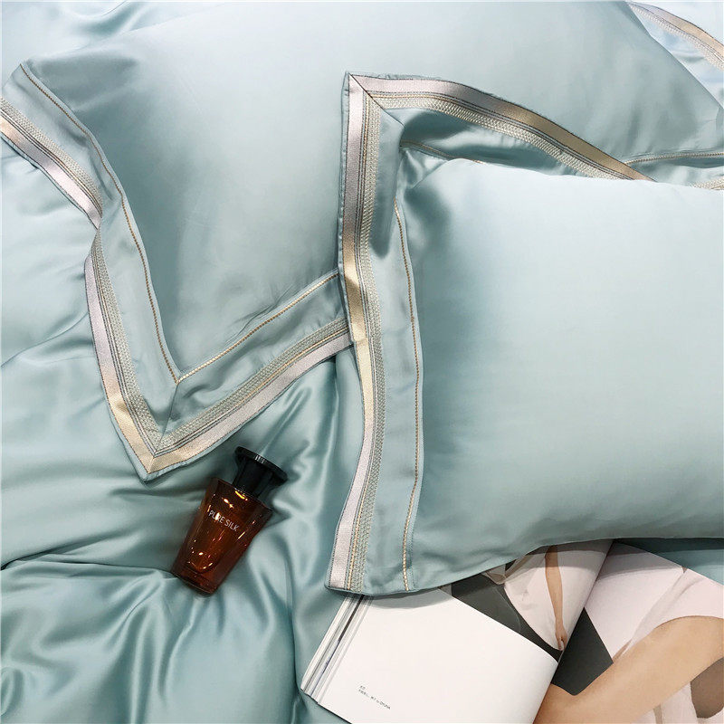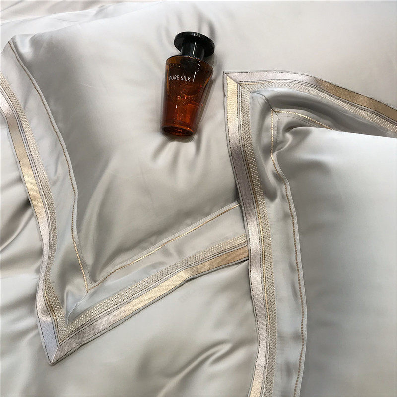 Light and luxurious 80 Heather Four Pieces of Cased Plate Room Minimalist Embroidered Ice Silk Quilt Cover Summer Naked Sleeping Silk Sliding Bed Supplies