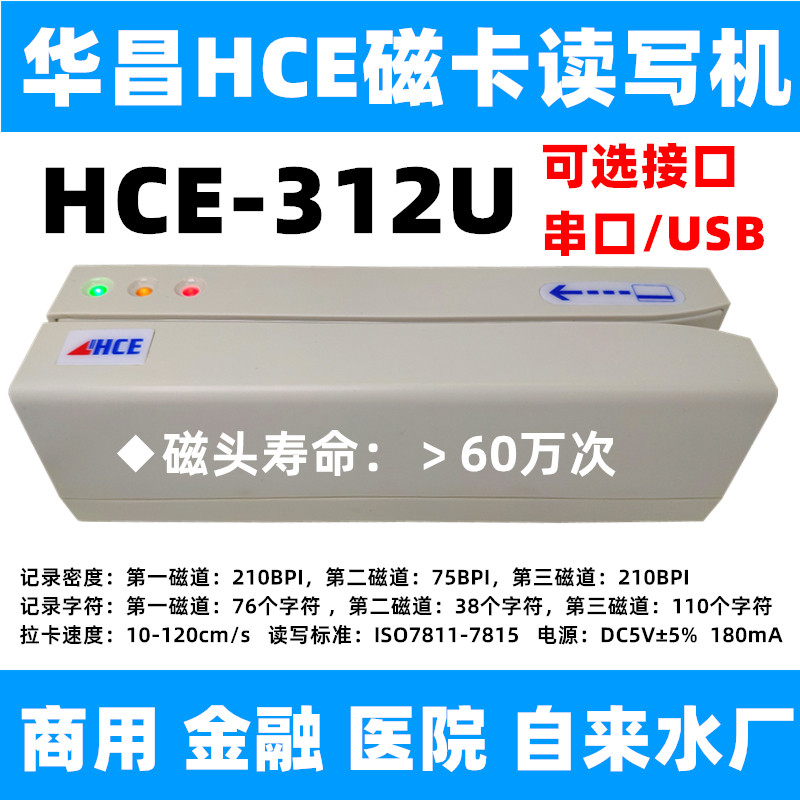 Huachang HCE312U two-track magnetic card reader/writer supermarket 312UH hospital pharmacy tap water company magnet strip card