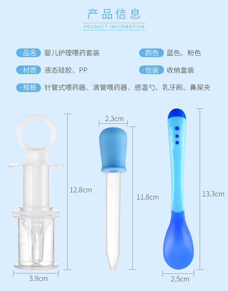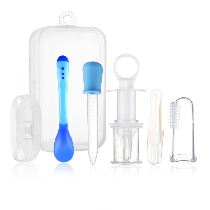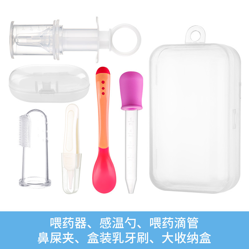 Newborn baby feeding device Feeding dropper Rushing Warm Spoon Nasal shit Nip Milk Toothbrush Five Pieces Baby Medicine Care Kit Group