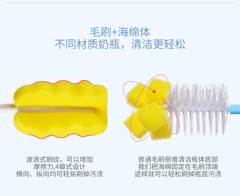 Baby bottle cleaning brush 6 sets baby bottle brush straw brush sponge nipple brush tool combination