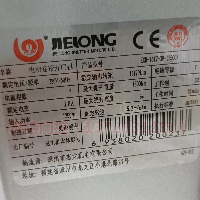 Jeron electric roller shutter open door machine ECR-1617-3P1500KG kg roll gate motor three-phase roll door machine