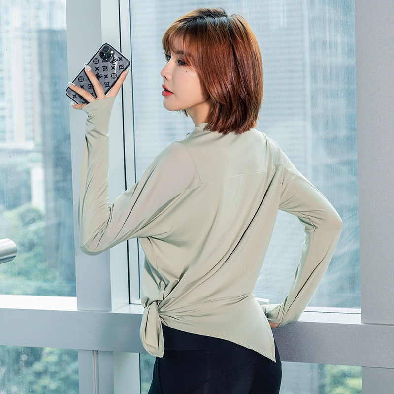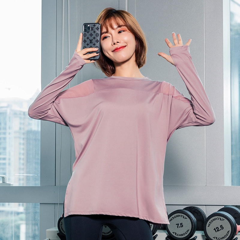 Spring Summer New Mesh Yarn Splicing Long Sleeve Woman Loose Comfort Sports Blouse Outdoor Exercise Large Size Yard Professional Fitness Room