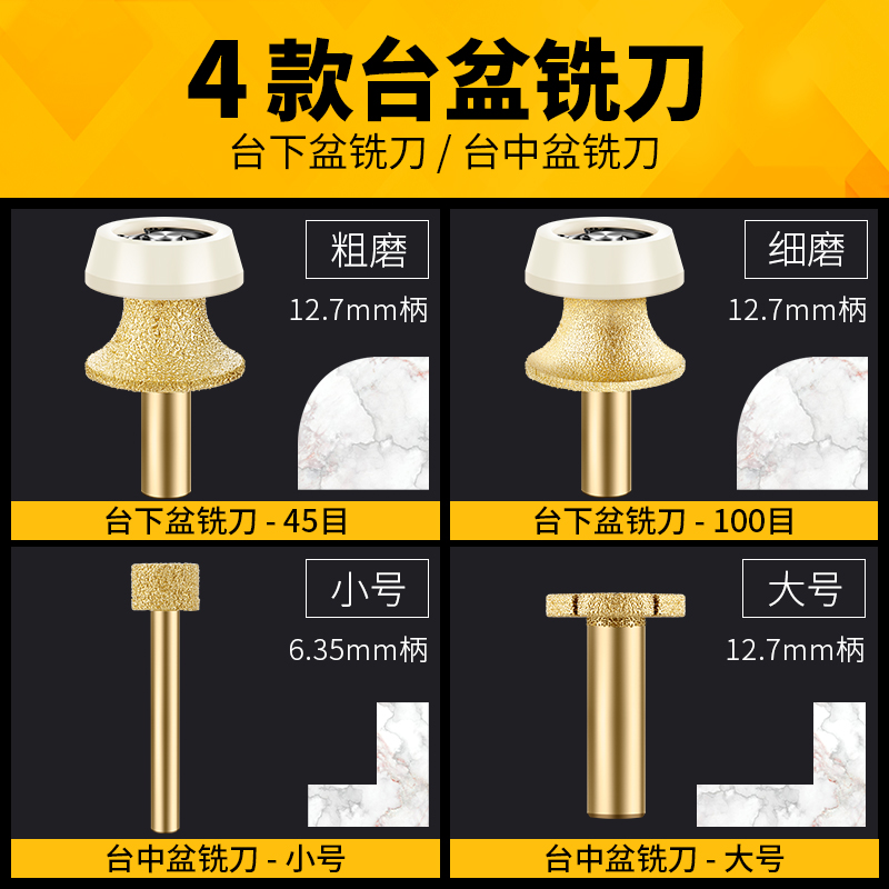 Brazing stage pelvic floor milling cutter diamond marble grinding head flower Kong quartz stone material Taichung basin grinding edge gong knife
