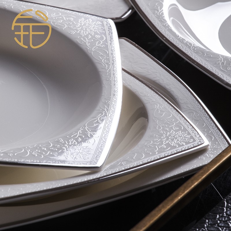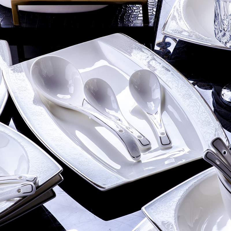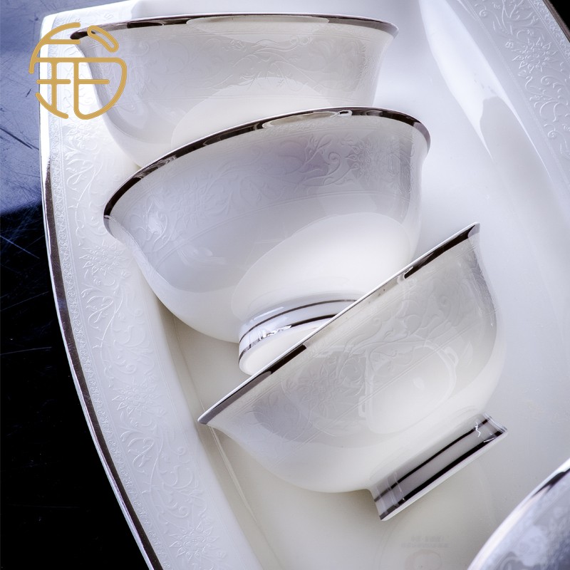 Bo Yuechen high-end boutique bowls and plates combination tableware home hotel banquet gift Jingdezhen bone china relief