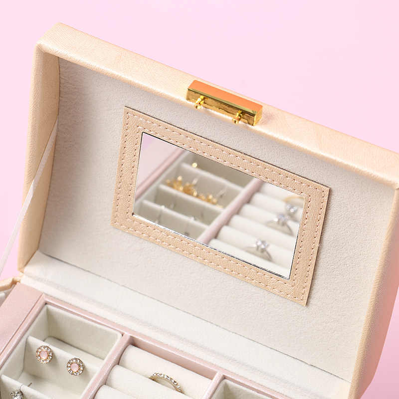 Nude pink (large capacity multi-layer drawer with mirror lock) Black (double side open necklace hook plate)