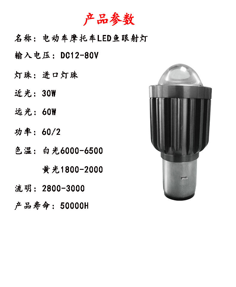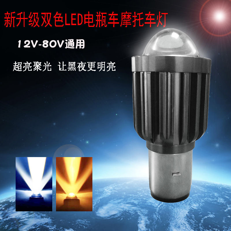 Locomotive LED headlight 12V-80V electric vehicle built-in super bright with lens bulb strong light white yellow far and near light