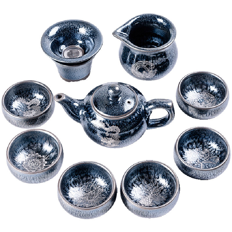 10 head of a tea set (colorful phantom) - cover bowl of 7 head (oil drop chrysanthemum)-Tea pot 11 head (oil drop chrysanthemum) 10 head (oil drop jelly mare) - cover
