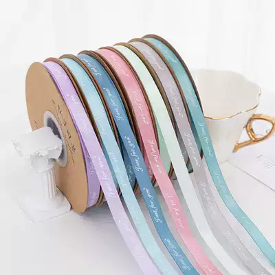 Mu Xi 1cm printed ribbon flower packaging ribbon English printing Ribbon gift baking packaging ribbon flower shop