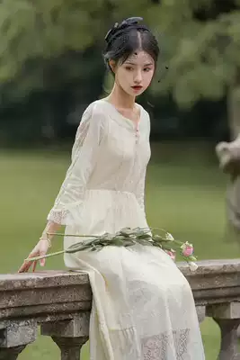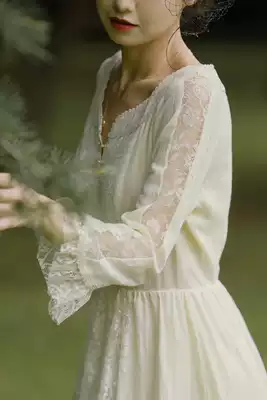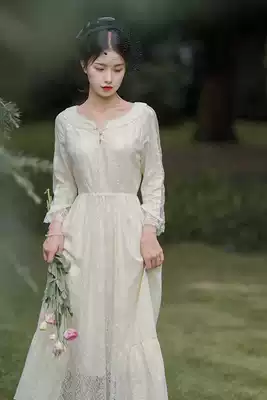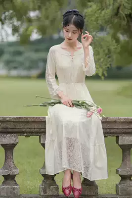"Tianfang Night Tan" ancient re-engraved Palace lace 2021 spring and autumn retro dress