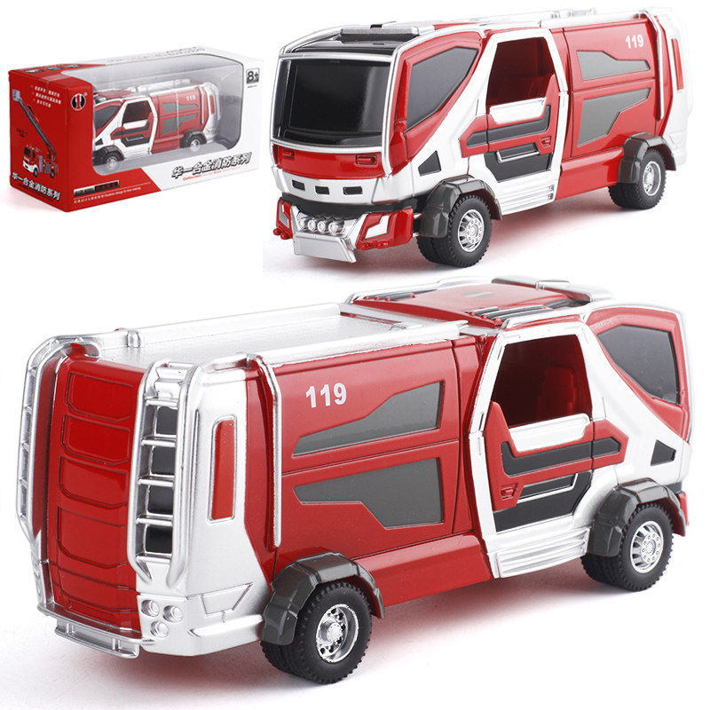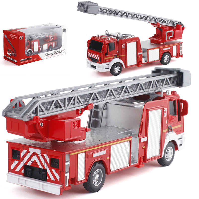 Metal simulation fire truck cloud ladder truck water tanker engineering vehicle model sound and light pull back toy