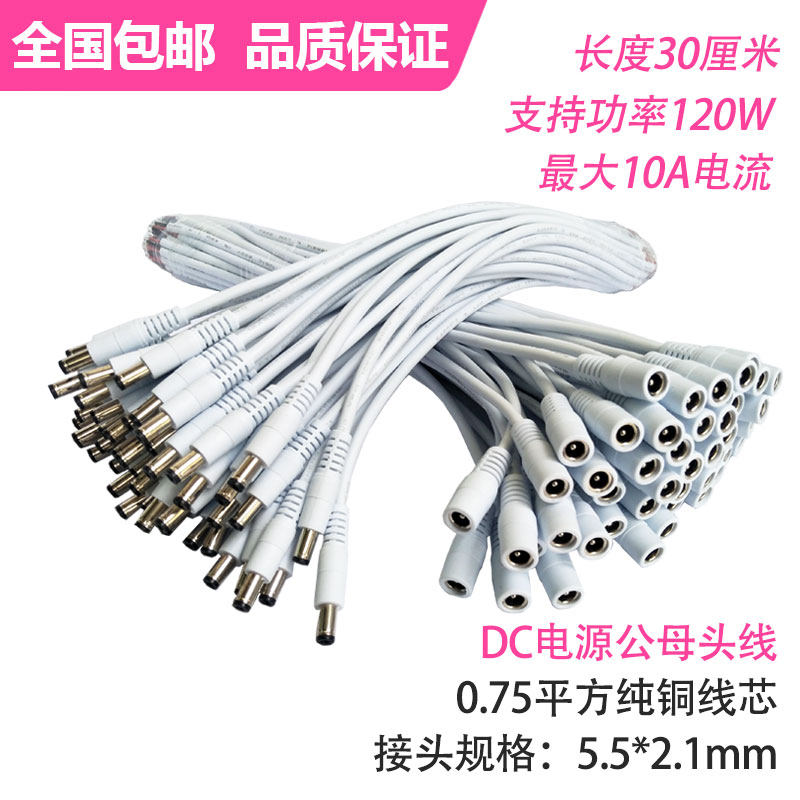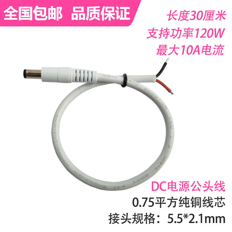 White plus full copper 0 75 square power supply DC5 5*2 1mm CMW head connection 12V10A power cord