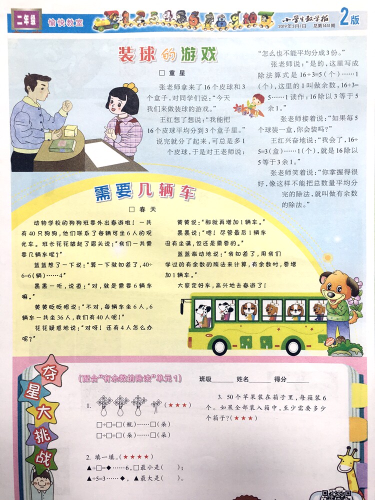 2020 autumn semester Su teaches 2 grade 2nd grade upper register Primary school students Maths newspaper decimal newspaper send matching test volume