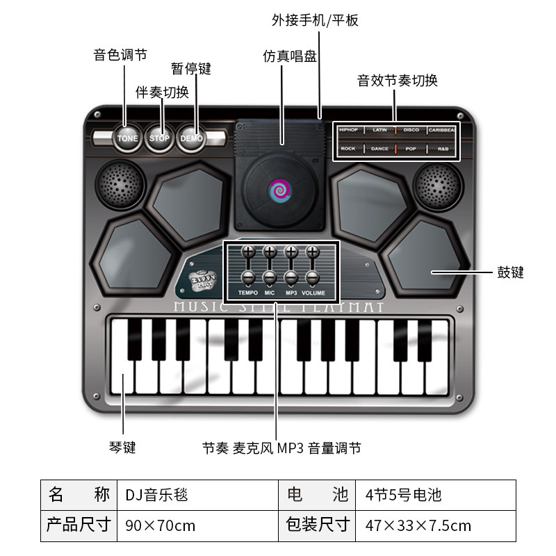 zippymat children infant early education Puzzle Electronic Learning Versatile DJ Dish Beating Drum Music Blanket Toy