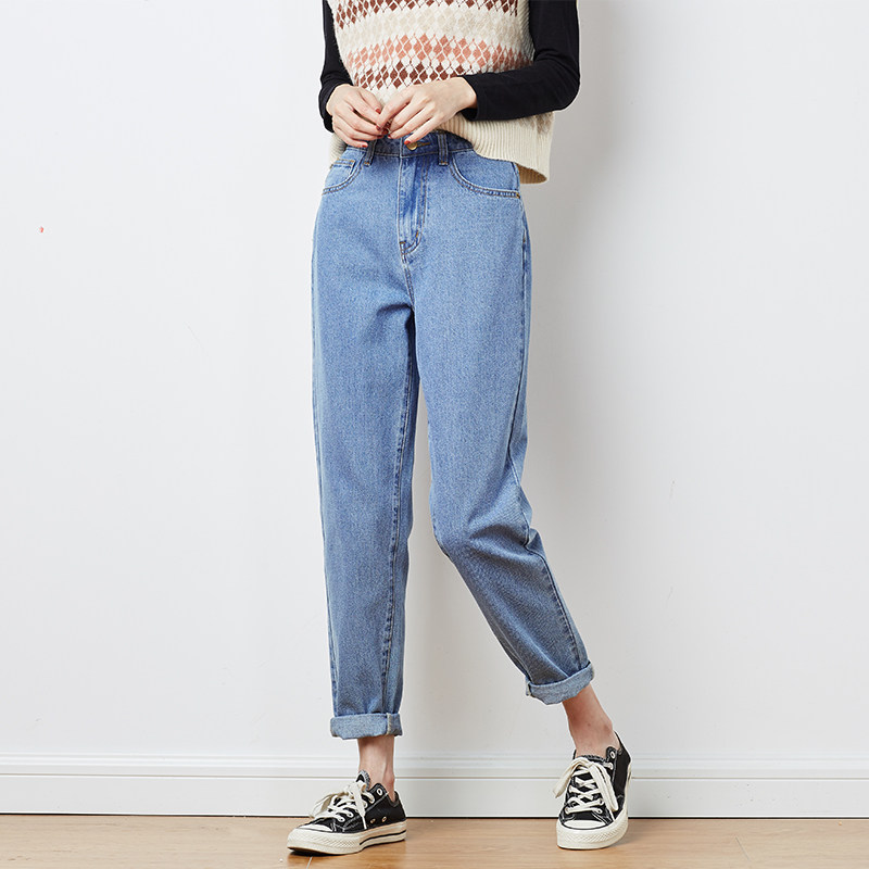 Tang lion spring and autumn new jeans women's straight loose high-waisted thin Harlan daddy pants ins tide brand pants