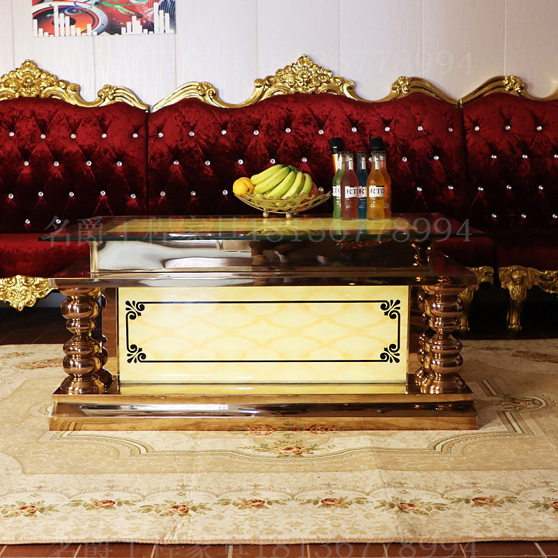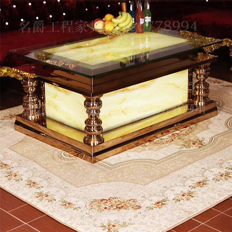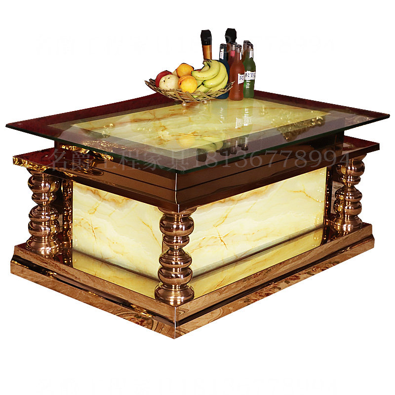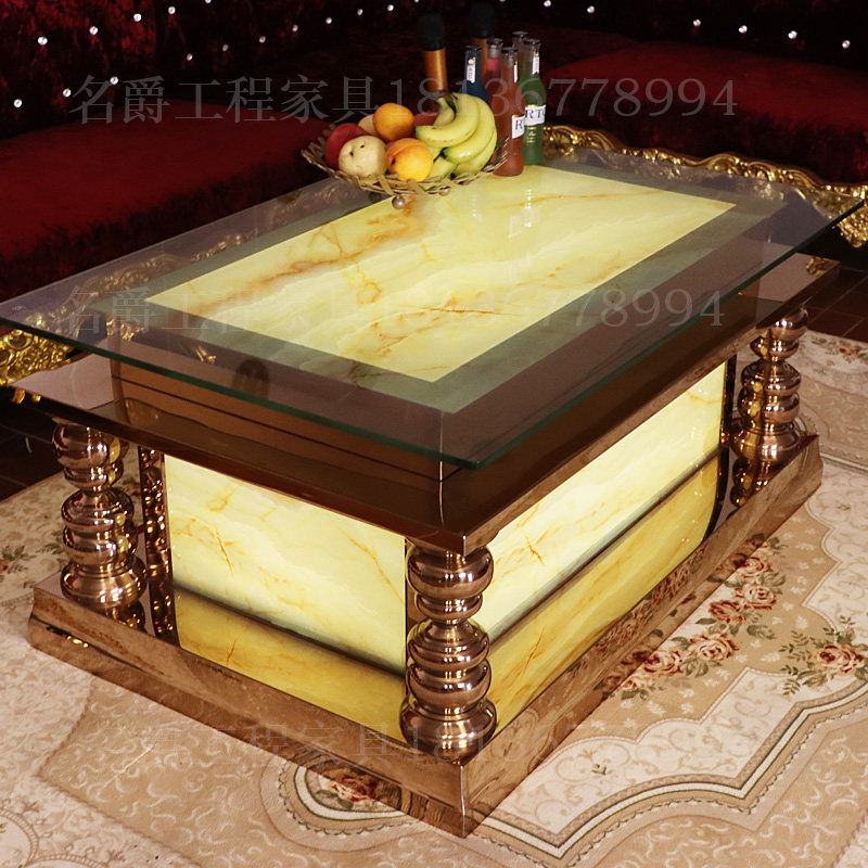 New KTV stainless steel bar Rose gold marble tea several European style of volume trafficking box tempered glass table glowing