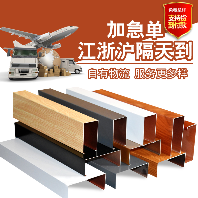 Handing aluminum square pass ceiling wood grain U-shaped groove square tube grille ceiling black white office installation decoration material