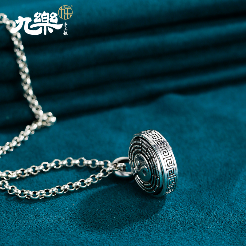 Jiu Le s990 sterling silver Tai Chi can be turned pendant vintage old men's personality domineering clavicle foot silver O-chain