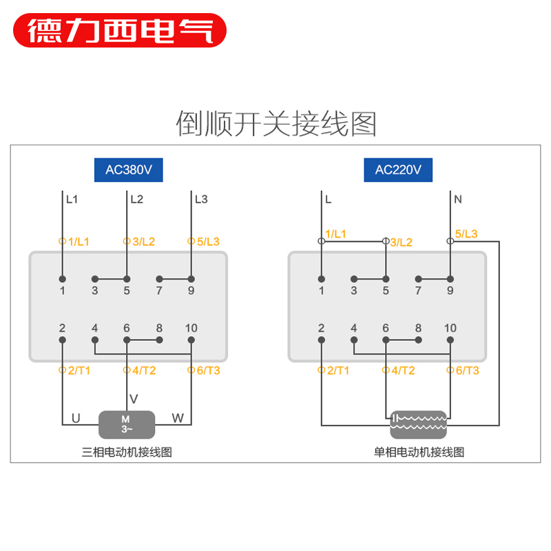 Delixi HY2-15 reverse shun switch Motor conversion forward and reverse reversible switch 15A iron housing