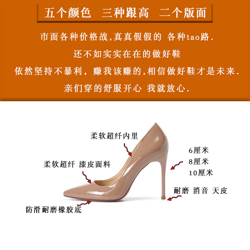 Nude high-heeled shoes women's 2022 new French stiletto heels are not tired feet in fairy net red patent leather pointed bag shoes women