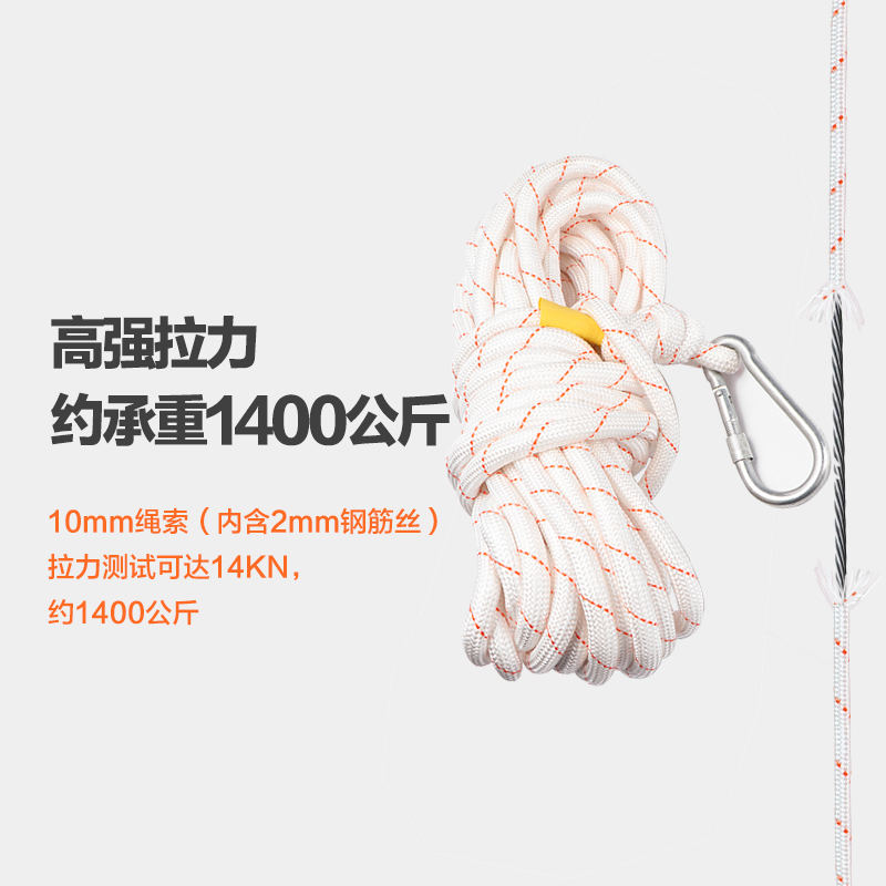 10mm*10m Wire Core Safety Rope (2-3F) (3C Certification 丨 Strong Load Bearing)9.5mm*10m Escape Rope (2-3F) 10mm*20m Steel Wire Core Safety Rope (4-6F) (3C Certification 丨 Strong Load Bearing)9.5mm*20m Escape Rope (4th-6th Floor) 10mm*30m Steel Wire Core Safety Rope (7th-9th Floor) (3C Certification 丨 Strong Load Bearing)9.5mm*30m Escape Rope (7th-9th Floor) 10mm*40m Steel Wire Core Safety Rope (10-13F) (3C certification 丨 strong load bearing) 9.5mm*40m escape rope (10-13F) 10mm*50m steel wire core safety rope (14-16F) (3C certification 丨 strong load bearing)9.5mm*50m escape rope (14-16th floor) 10mm*60m steel wire core safety rope (17-19th floor) (3C certification 丨 strong load bearing)9.5mm*60m escape rope (17-20th floor) 10mm*70m steel wire core safety rope(20-23rd floor) (3C certification 丨 strong load bearing) 9.5mm*70m Escape Rope(20-23F) 10mm*80m Wire Core Safety Rope (24-26F) (3C Certification 丨 Strong Load Bearing)9.5mm*80m Escape Rope (24th-26th Floor) 10mm*90m Wire Core Safety Rope (27th-29th Floor) (3C Certification 丨 Strong Load Bearing)9.5mm*90m Escape Rope (27th-29th Floor) 10mm*100m Wire Core Safety Rope (30+ Floor) (3C Certification 丨 Strong Load Bearing)9.5mm* 100m escape rope (30-33rd floor) Fire escape set (seat belt + figure eight retarder + O-shaped steel buckle + gloves) Aerial work air conditioning installation (full body seat belt + 2.8 meters single hook) High-grade European safety belt (with cushioning) + 1.6 meters double hook