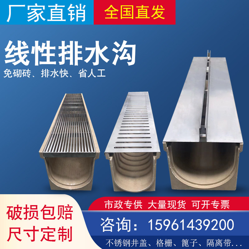 Resin linear drainage ditch U-slot slot type drainage ditch cover stainless steel linear kitchen trench cover 304