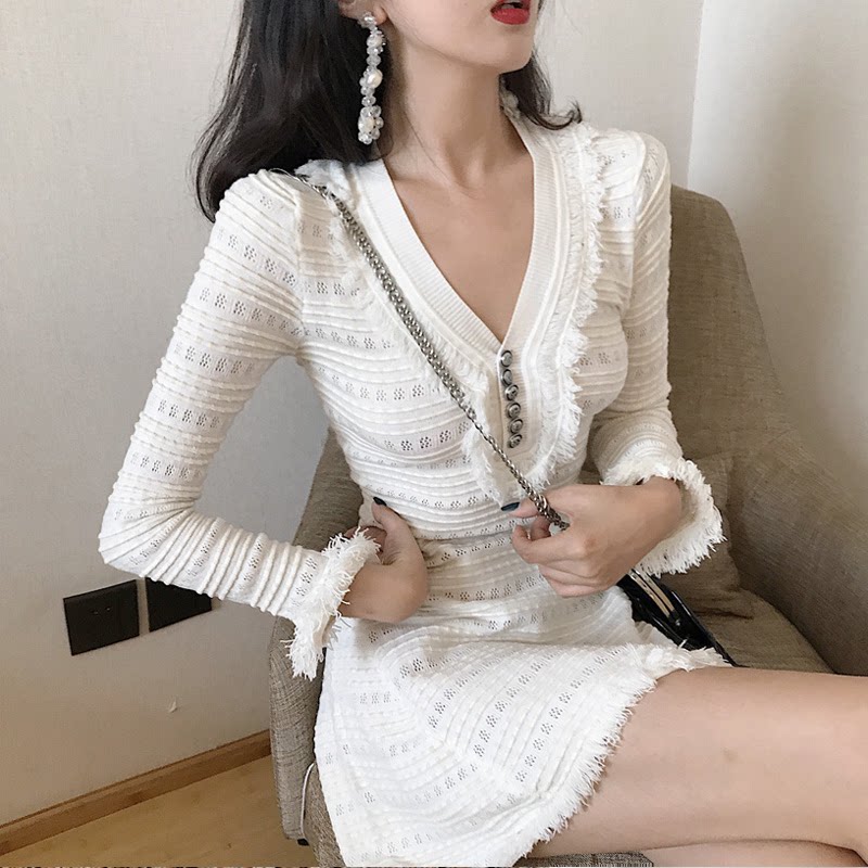 South Korean small Xiangfeng Wind dress 2022 New summer small sub-temperament collection waist display slim Herbenwind hollowed-out skirt