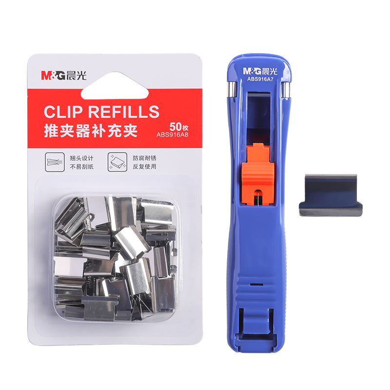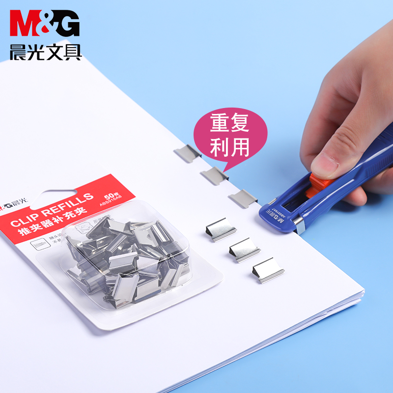 M&G PushEr Booster Clip Supplementary Fixture Stationery Test Paper Binding Push Stapler Paper Fixing Information Book Page Clip Metal Tailless Ticket Clip Book Supplement Nail Dovetail Clip Finishing Artifact