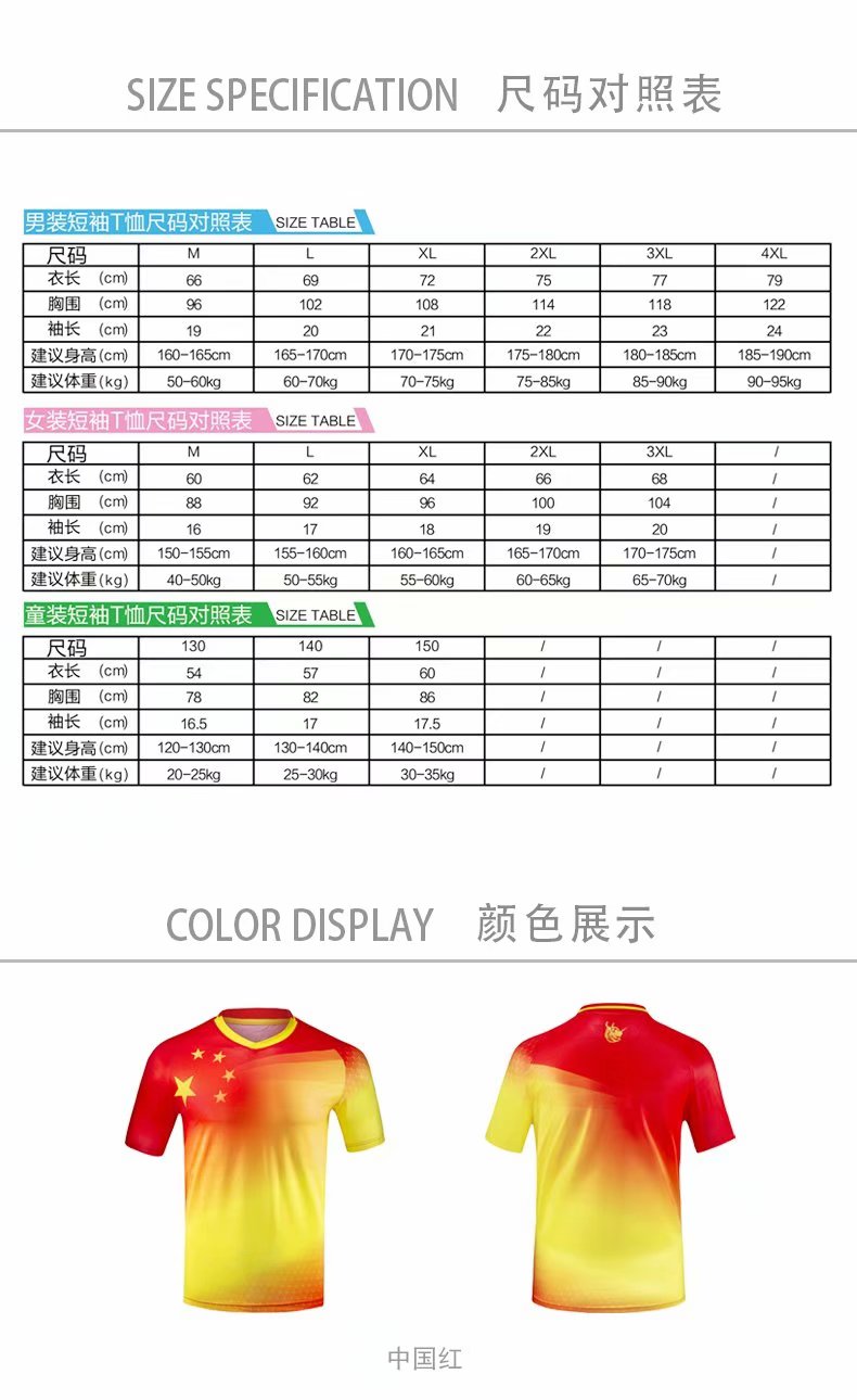 Badminton blouses patriotic sports culture shirt ping-pong ball short sleeve T-shirt male and female child adult summer free custom