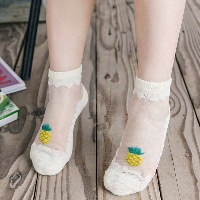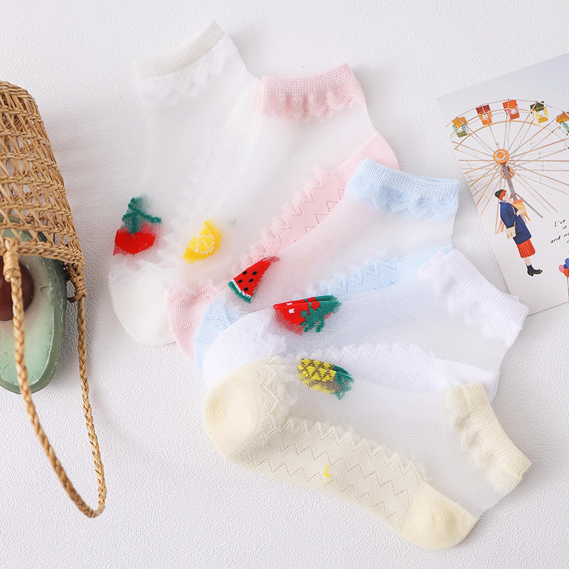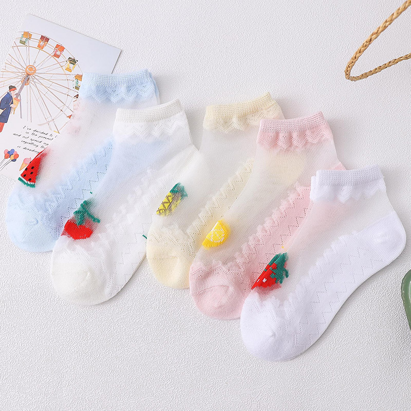 Crystal Silk Socks Children Ultra Slim Ice Silk Socks Girl Fruit Socks Little Girl Summer Cute Short Socks 3 years 5