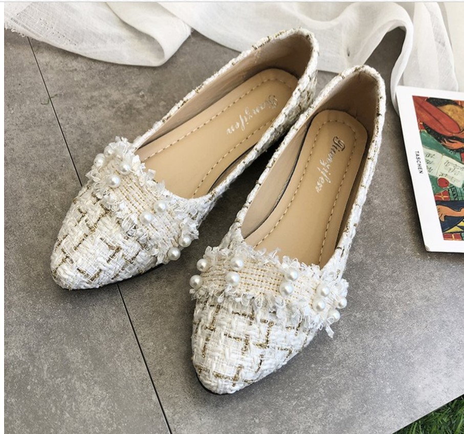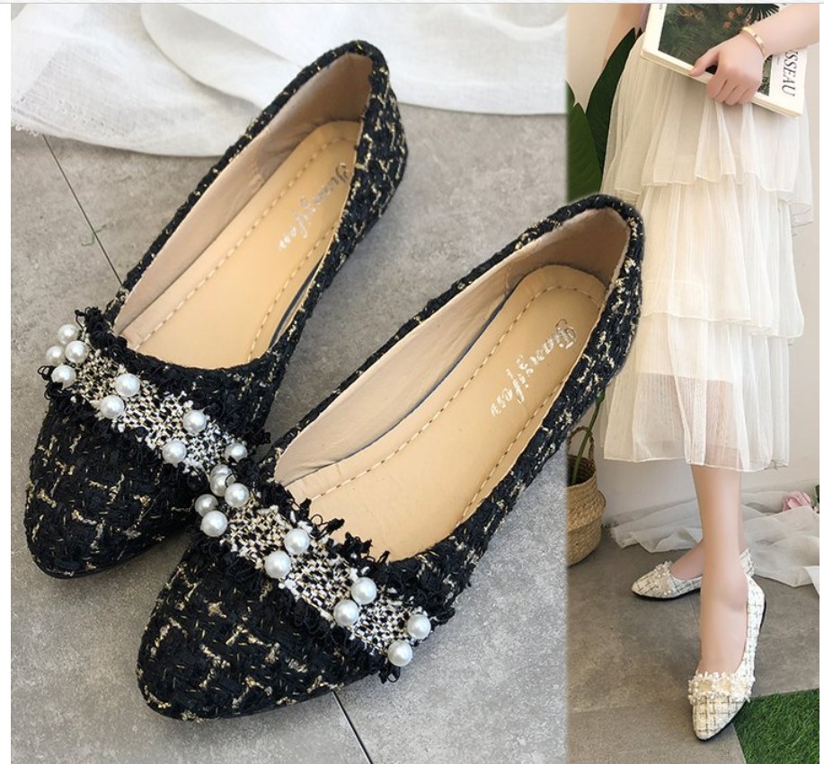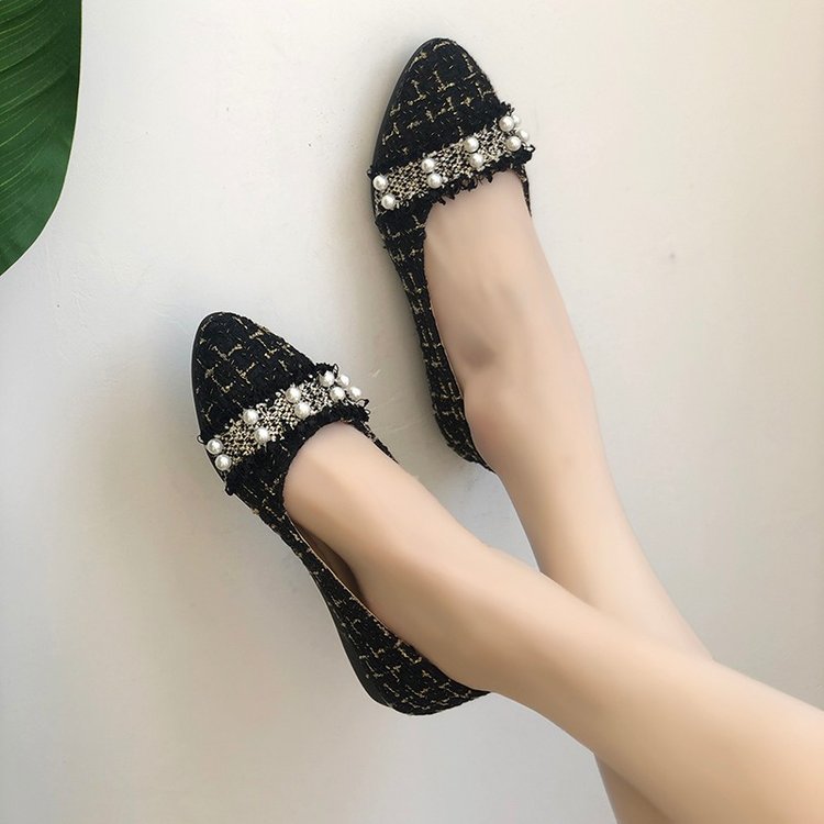 Single shoes women's flat bottom 2020 summer all-match Korean version beaded fairy gentle shoes grandma shoes net red small fragrance shoes
