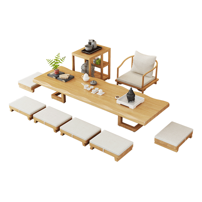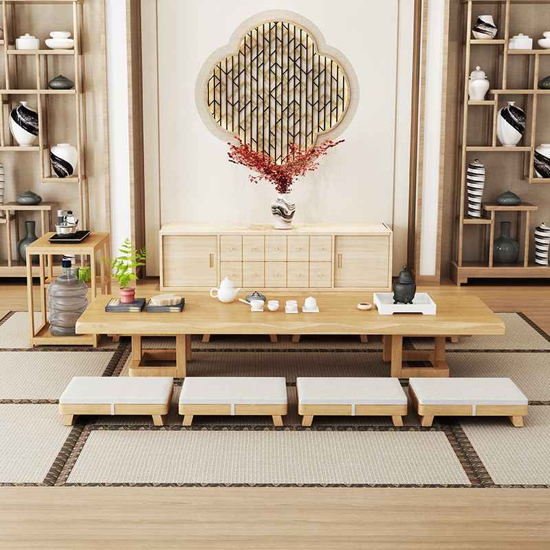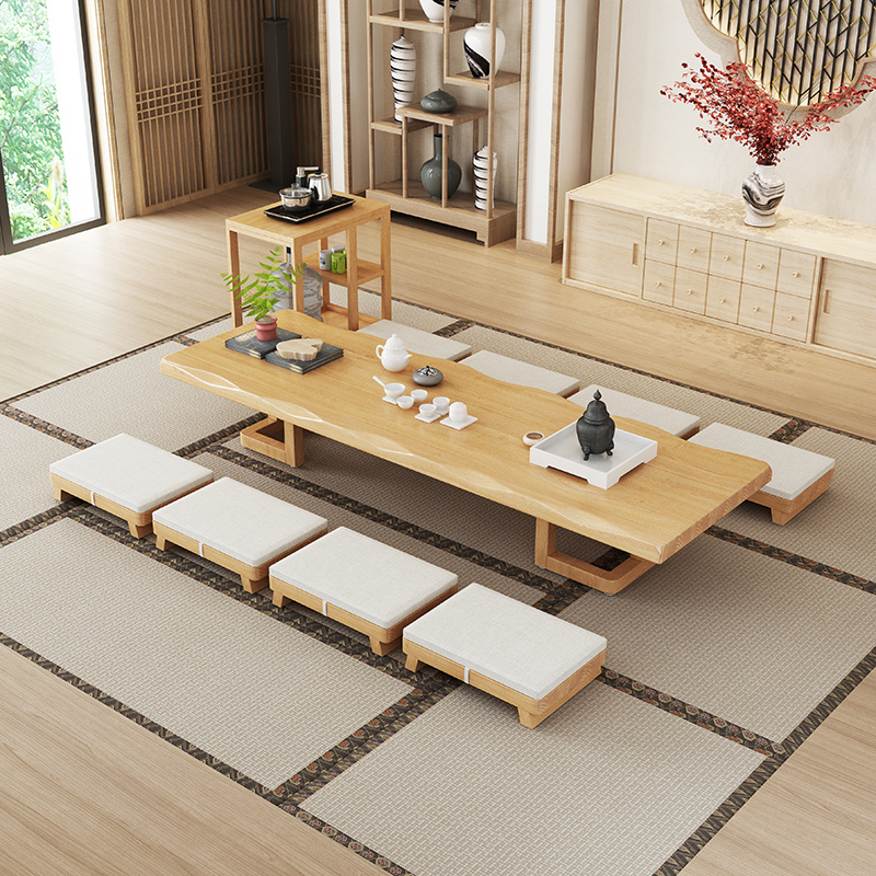 Sun-style tea table and chairs combined full solid wood tatami tea table short long bar table sitting at table terrace short table Zen