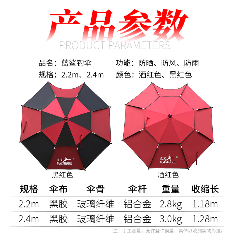 Blue shark fishing umbrella big fishing umbrella thickened vinyl universal fish umbrella anti-storm sunscreen umbrella outdoor fishing gear