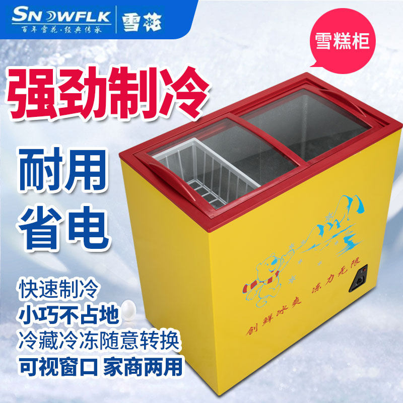 Snowflake Ice Cream Cabinet Display Cabinet Commercial Frozen horizontal Ice cabinet Home Small glass Gay door Mini Double door