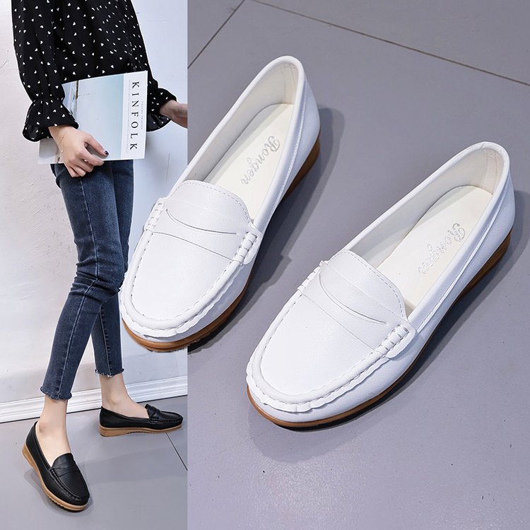 Net red small white shoes women's 2021 spring new all-match thick bottom non-slip lazy beanie shoes comfortable soft bottom nurse shoes