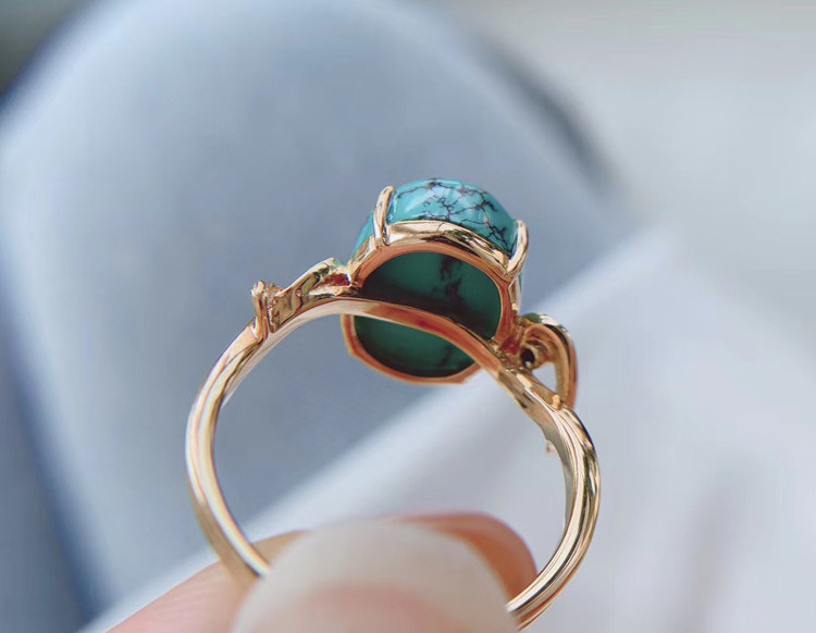 Minimalist net flower original mine natural green pine stone ring Porcelain Glazed Diamond Woman's Shiny Glossy Finish with 18K gold