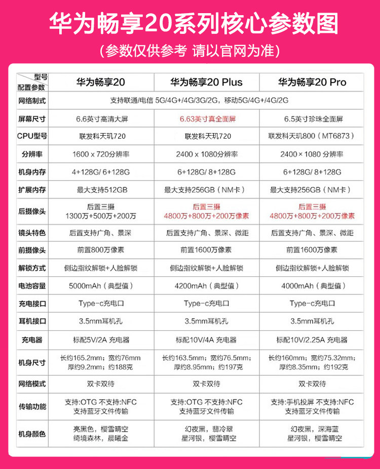 Enjoy 20Pro (6 128G) Magic Night Black Enjoy 20Pro (6 128G) Deep Sea Blue Enjoy 20Pro (8 128G) Galaxy Enjoy 20Pr
