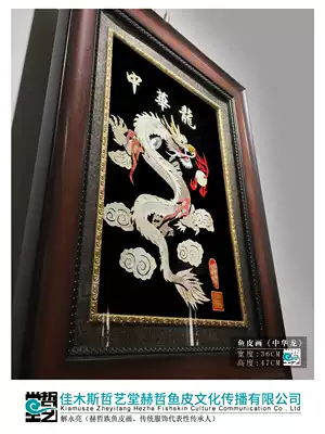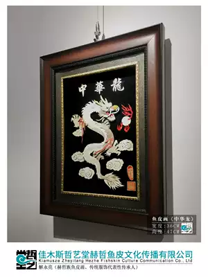 Hezhe fish skin painting long Lie Yongliang works intangible cultural heritage light luxury living room porch decorative painting collection gift