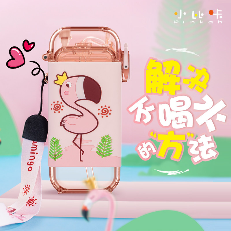 Small Bikha Children Summer Straw Cup Square Flat Water Cup Cute Cartoon Cuddling Bag Nursery School Student Kettle
