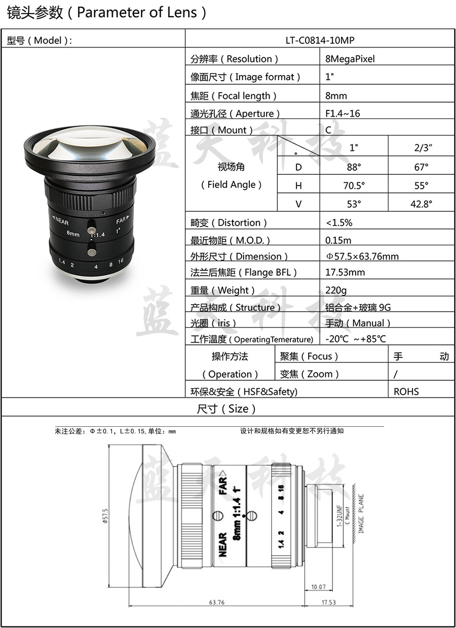 8 million HD Intelligent machine Vision detection C Lens 8mm Focal Length 1 Inch Industrial Camera C Mouth Lens