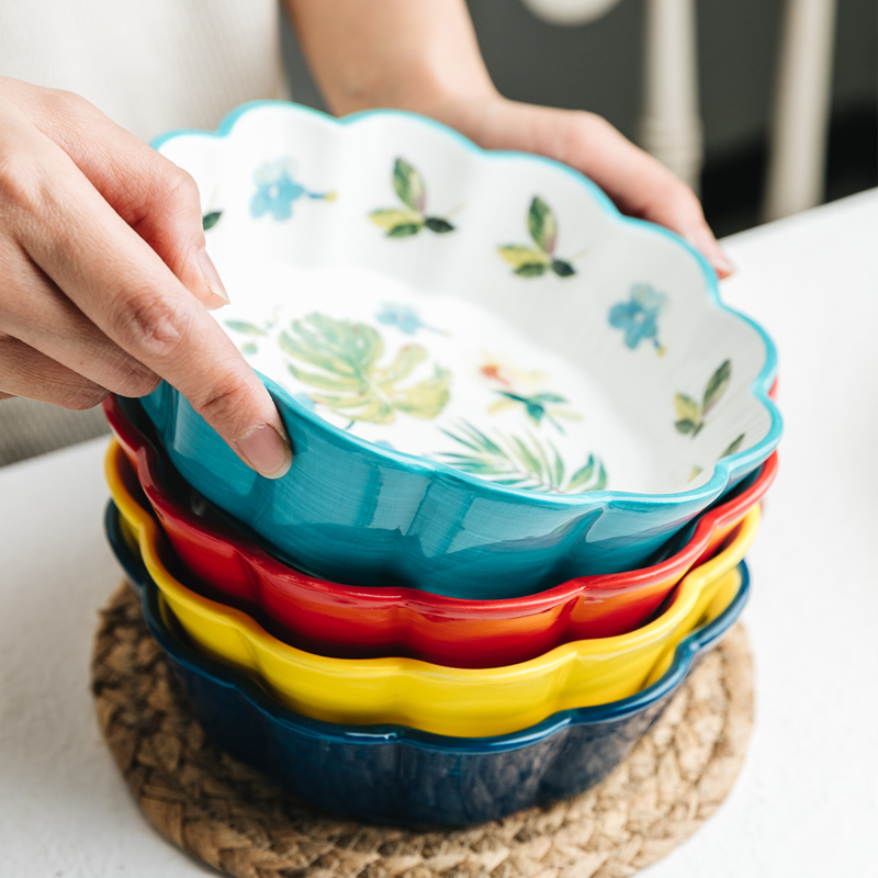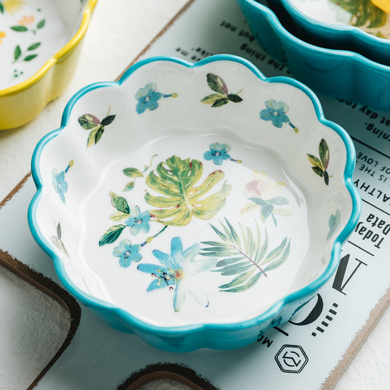 Creative lace ceramic baking bowl home oven baking pudding bowl dessert rice bowl fruit salad soup noodle bowl new product