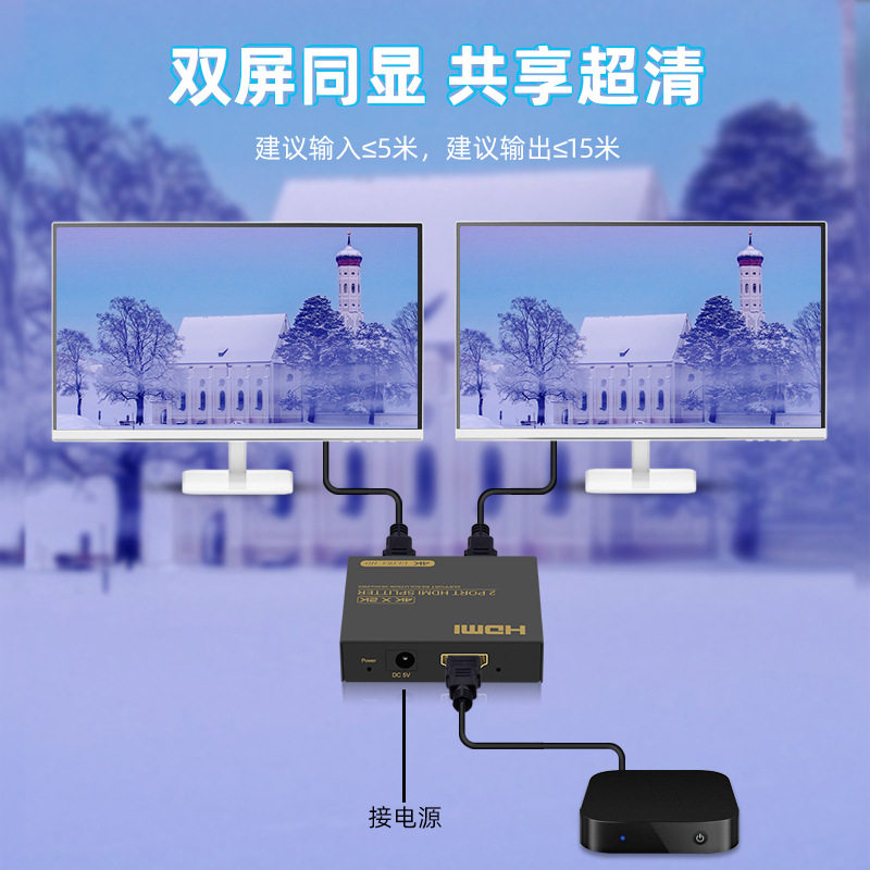 The Jin League hdmi 10% 2 converter with the same screen with audio distributor simultaneously shows the 4K ultra high-definition progress
