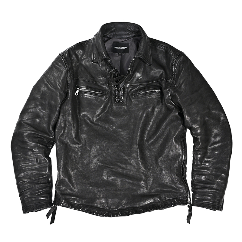 2021 Niche Japanese vintage washed uncoated vegetable tanned head layer Sheepskin pullover Motorcycle sweater jacket Genuine leather