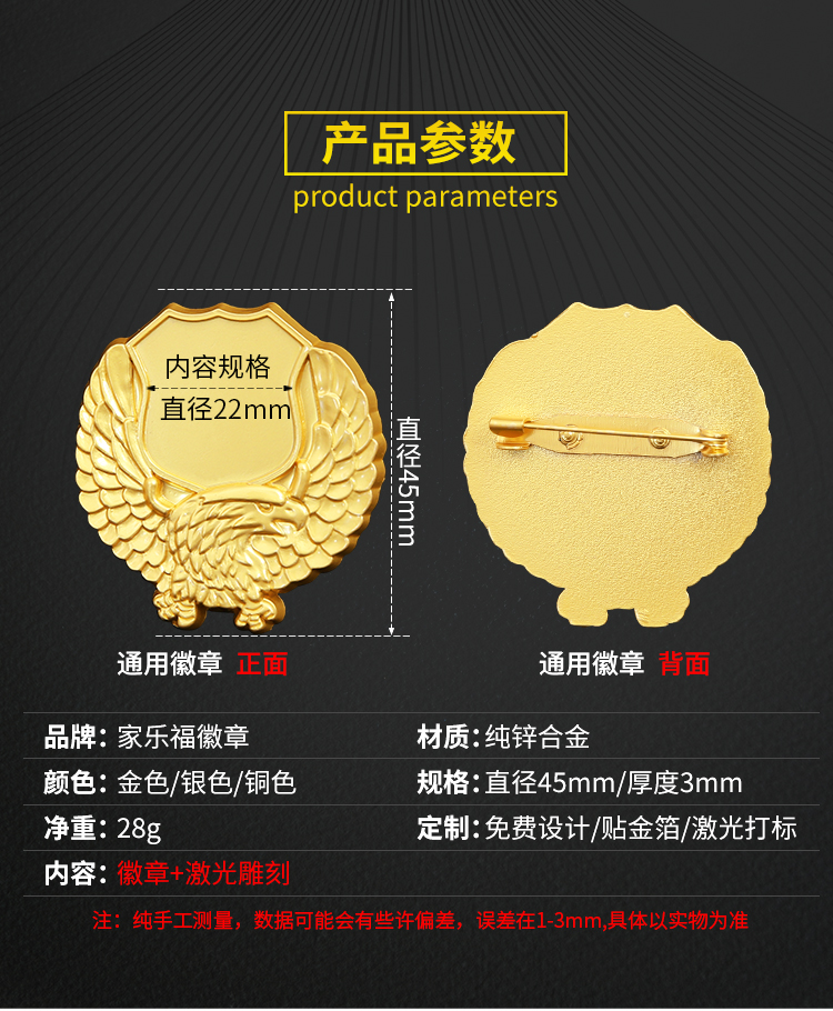Metal badges order to be logo Party members' breasts set as school emblems badge Chest Pin Badges customized Chest Badge set to be made