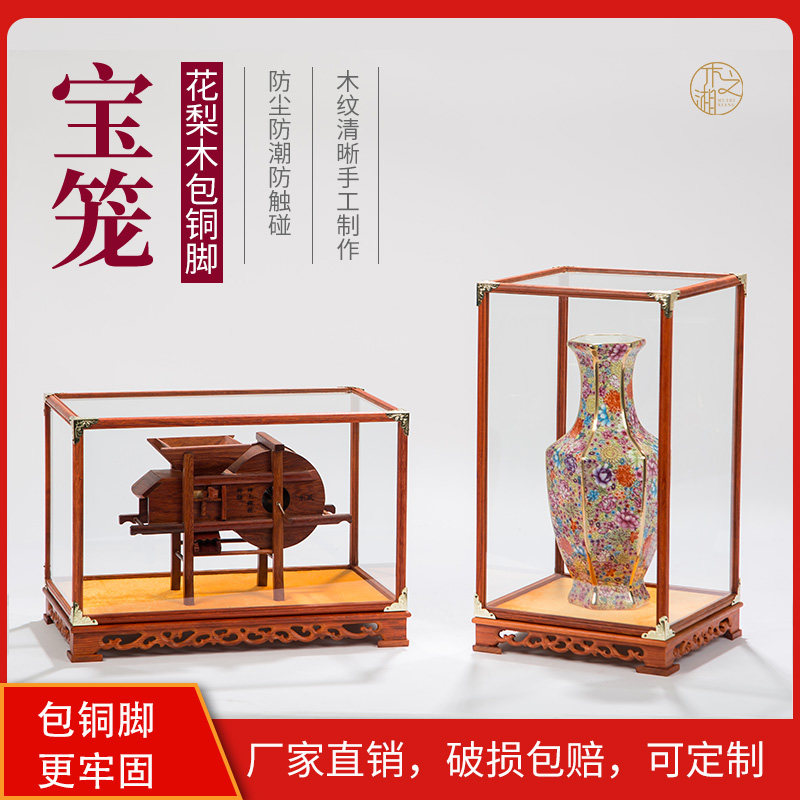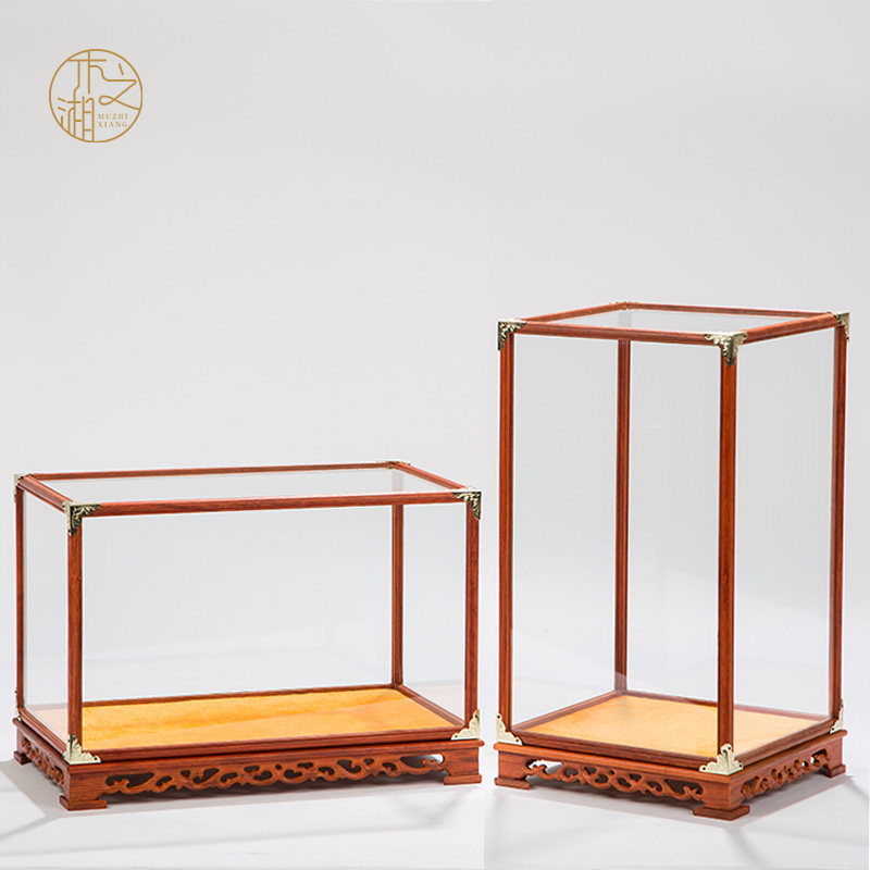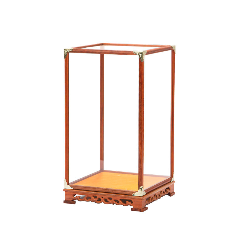 Mahogany crafts glass cover Buddha statue ornament vase Guan Gong dust cover flower pear display box plus fixed Chinese style